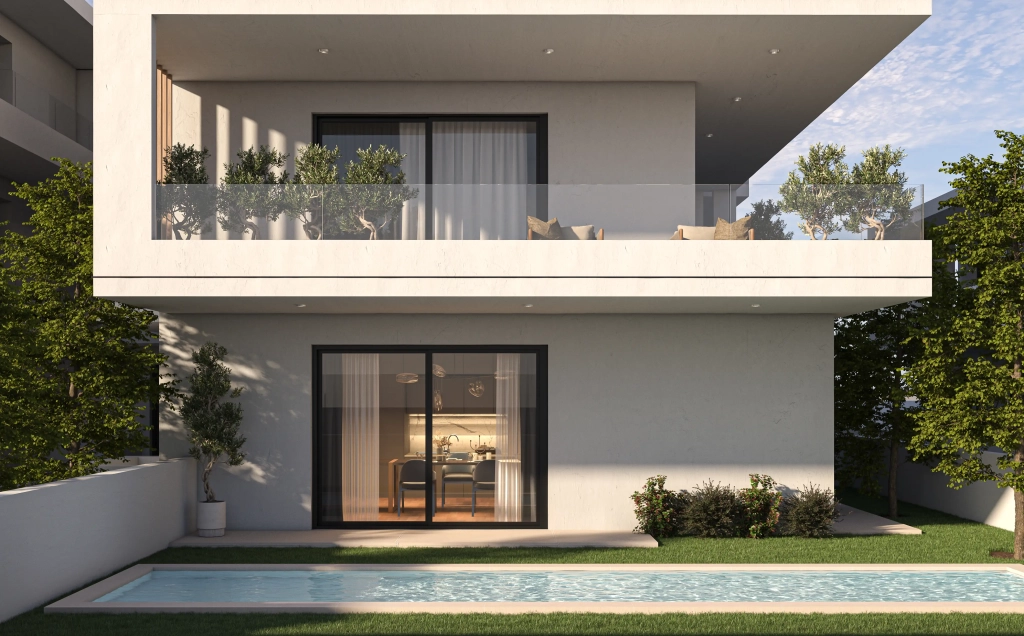In the lush neighborhood of Kifissia, at 18 Kalamatas Street, we have created a modern residential complex of high aesthetics and energy class A+. The complex consists of a three-story and a two-story building, featuring apartments ranging from 54 to 99 sq.m. with 1 to 3 bedrooms. The layout of the spaces ensures brightness and functionality, while the complex offers private pools, jacuzzis, gardens, storage rooms, and parking spaces.